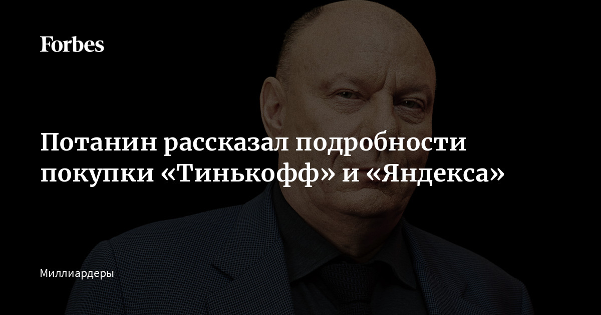 Владимир Потанин в интервью Forbes раскрыл детали приобретения банка «Тинькофф» и «Яндекса». По его словам, информацию о том, что банк продается, ему принесла его команда, а о продаж