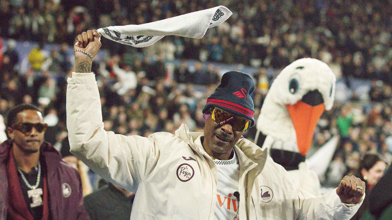 Bandaríski rapparinn Snoop Dogg kom í fyrsta sinn fyrir framan stuðningsmenn velska fótboltaliðsins Swansea síðan hann varð fjárfestir í liðinu þegar hann mætti á heimaleik þess gegn Preston North End á þriðjudag.