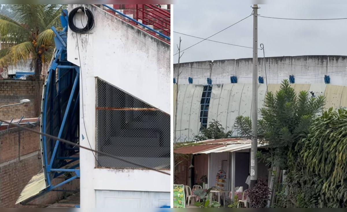 El deplorable estado del estadio de Unión Comercio inaugurado en el año 2017: recinto se encuentra con el techo colgando
