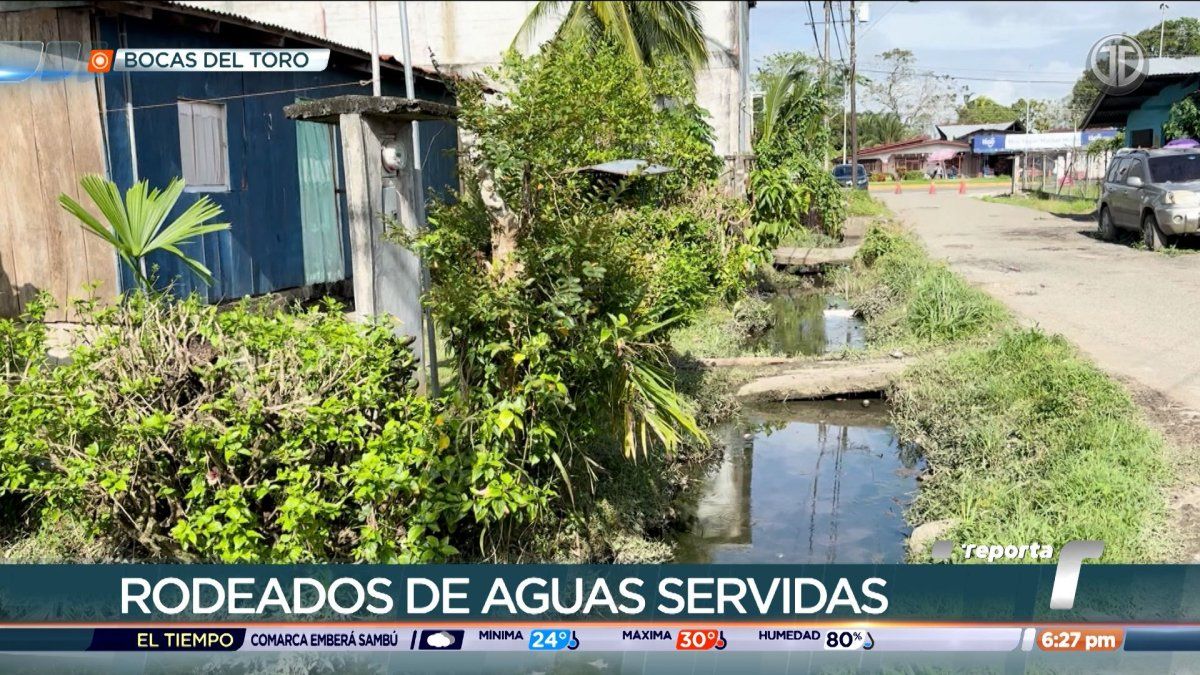 En Guabito, sector fronterizo de Bocas del Toro, los moradores de una barriada viven rodeados de aguas servidas. Denuncian que cuando llueve las viviendas se inundan.