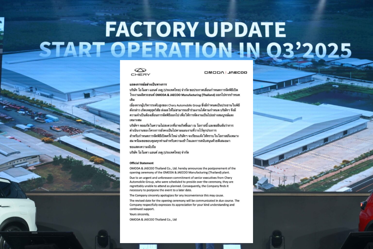 จับตาค่ายรถจีน Chery Automobile เลื่อนพิธีเปิด โรงงาน […] อ่านข่าวต้นฉบับ: Chery OMODA&JAECOO ยกเลิก เปิดโรงงาน จ.ระยอง แจ้งเหตุสุดวิสัย
