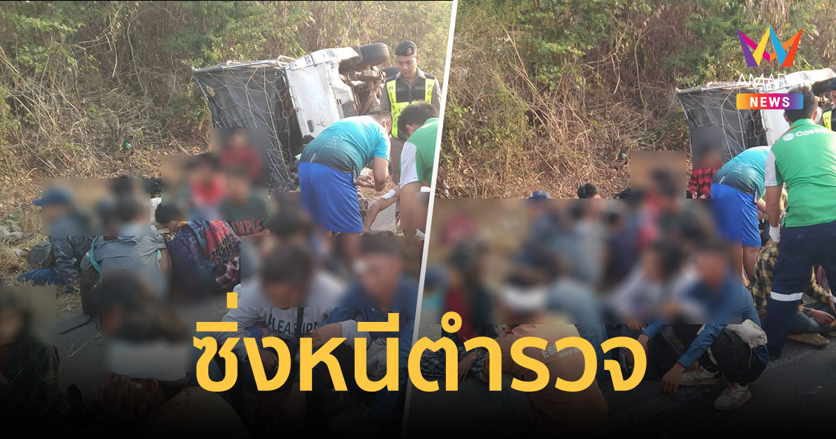 กาญจน์ระทึก! กระบะตีนผีขนแรงงานเถื่อน 60 ชีวิต ซิ่งหนีตำรวจทางหลวง พลิกคว่ำเทกระจาด เจ็บระนาว 20 ราย เลือดอาบเต็มถนน