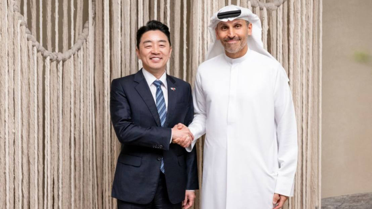 ▲ 아랍에미리트를 방문한 강훈식 대통령 비서실장이 칼둔 칼리파 알 무바라크 아부다비 행정청장과 악수하는 모습을 26일 본인의 SNS …