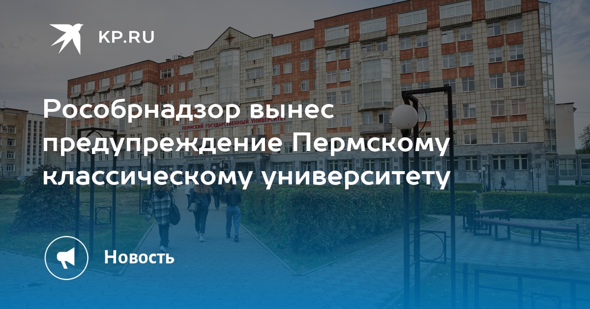 Рособрнадзор направил официальное предостережение Пермский государственный национальный исследовательский университет в рамках государственного контроля в сфере образования. Об этом ведомство сообщило на своем сайте. В документе говорится о недопустимости нарушений обязательных требований и необходимости принять меры для их соблюдения. При этом конкретные замечания в публикации не уточняются.