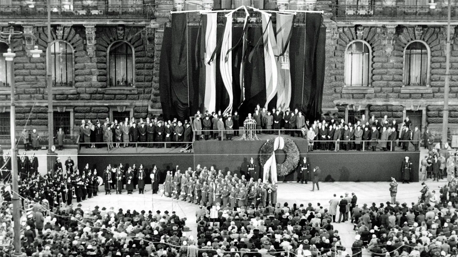 150.000 Menschen haben sich am 26. Februar 1962 in Hamburg versammelt, um der Sturmflut-Opfer zu gedenken - 315 waren gestorben.