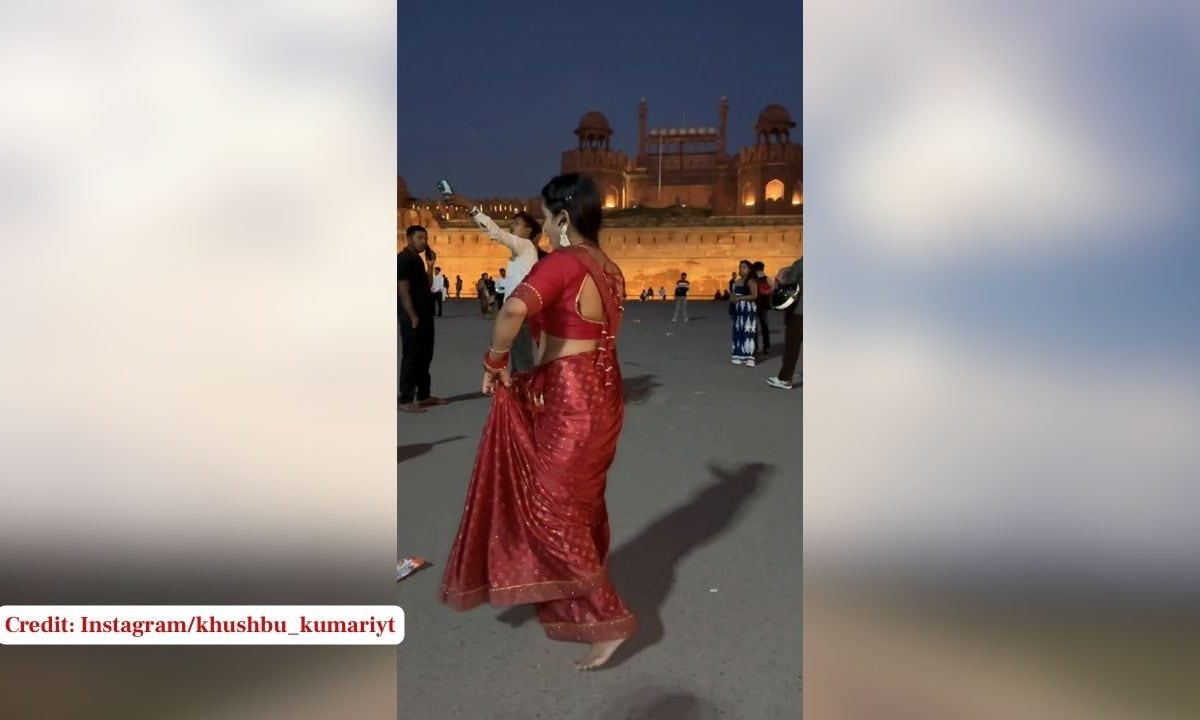 सोशल मीडिया पर लाल साड़ी वाली एक महिला का वीडियो तेजी से वायरल हो रहा है, जिसमें वह लाल किले के सामने खेसारी लाल यादव के भोजपुरी गाने 'राजा हमरा से' पर जबरदस्त डांस करती नजर आ रही है. जैसे ही गाने की बीट्स बजती हैं, वह लाल किले के सामने खड़े होकर बेहतरीन ठुमके लगाना शुरू कर देती है. वहां मौजूद लोगों की भीड़ भी उसे डांस करते देख हैरान रह गई. युवती के डांस स्टेप्स इतने लचीले और गाने की लय के साथ सटीक हैं कि लोग इसे बार-बार देखने पर मजबूर हो रहे हैं. उसने अपने बालों की लंबी चोटी बनाई हुई है, जो उसके डांस मूव्स के साथ हवा में लहराती हुई बेहद आकर्षक लग रही है.