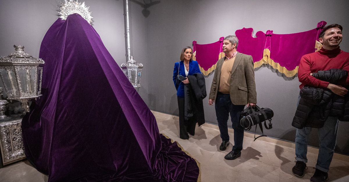 La cofradía repasa su propia historia en una exposición en Cajasol que reúne el estreno del paso de la Dolorosa