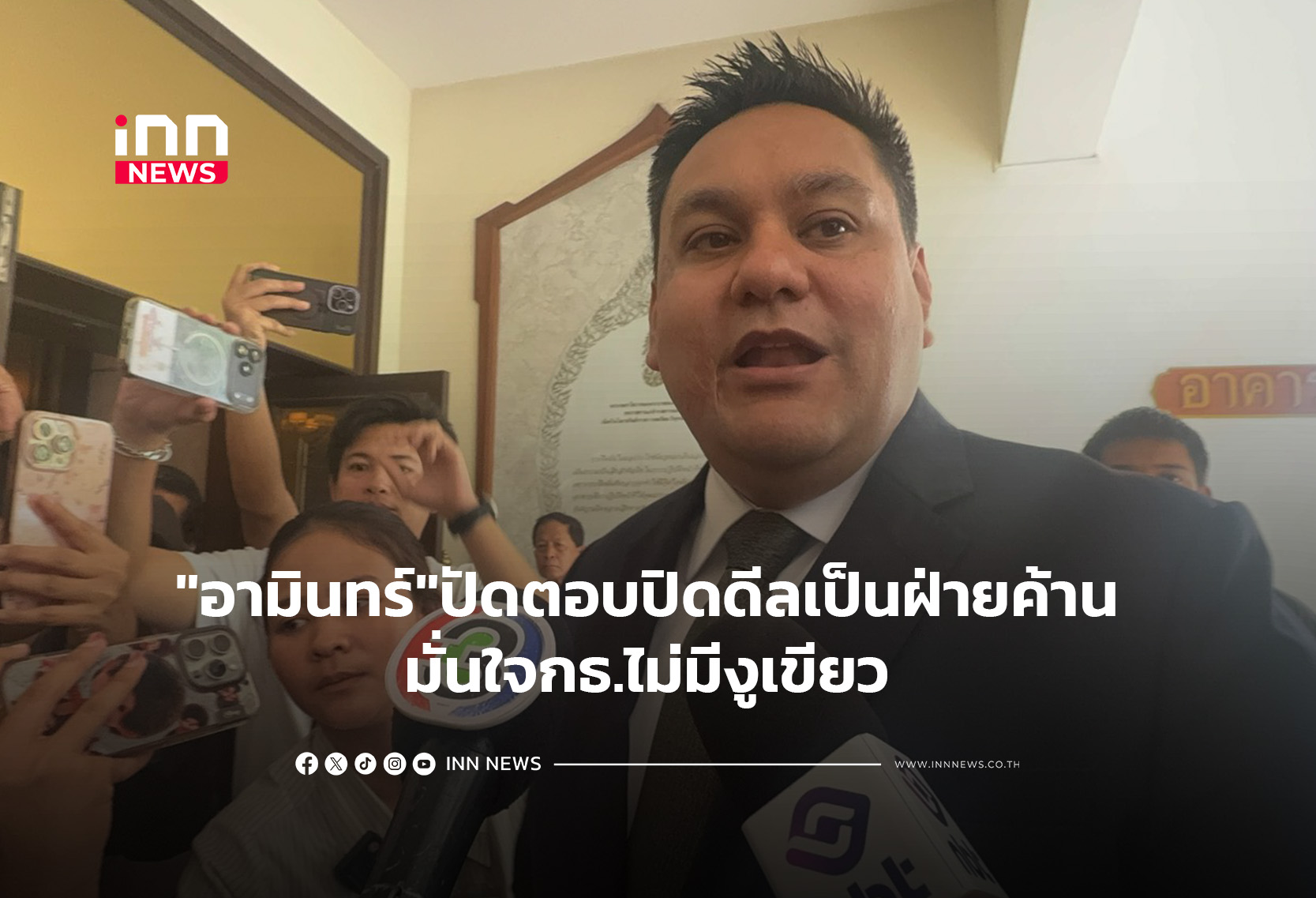 “อามินทร์” เข้ากระทรวงเกษตรฯ เผยคุยให้กำลังใจ “ธรรมนัส” ผ่านไลน์ ปัดตอบปิดดีลภูมิใจไทยไปเป็นฝ่ายค้าน มั่นใจ กล้าธรรม ไม่มีงูเขียว มีแต่ “งูบอล” เหตุผู้กองดูแลดี