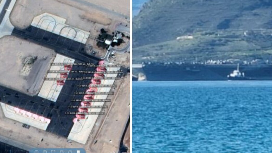 בצילומי לוויין נראו מטוסי הקרב המתקדמים ששלחה ארה"ב בבסיס עובדה, יחד עם מערכות הגנה אווירית. ספינת המלחמה האמריקאית תועדה עוזבת את הנמל בכרתים בדרכה לאזור
