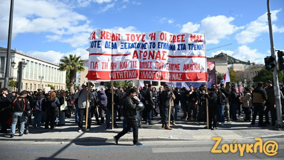 Σε εξέλιξη το φοιτητικό συλλαλητήριο στα Προπύλαια για τα Τέμπη