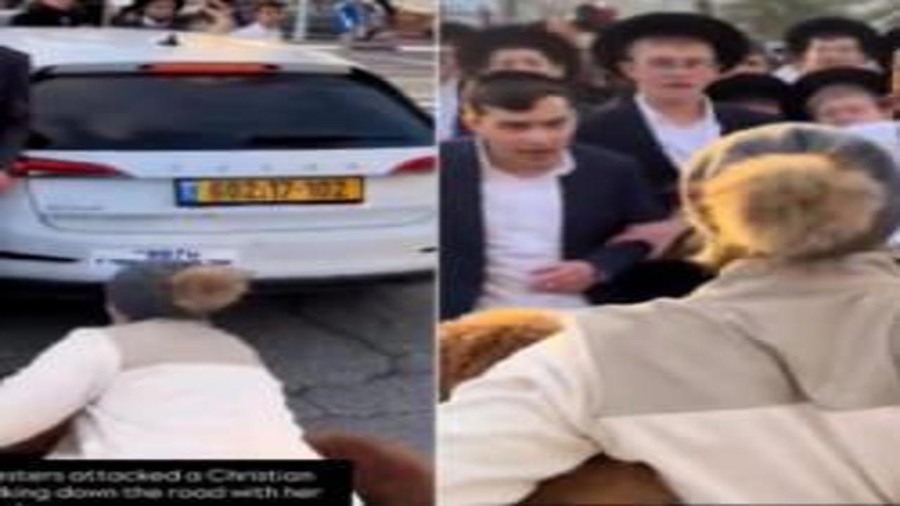İşgal altındaki Kudüs'te düzenlenen bir gösteri sırasında, İsrailli yerleşimciler köpekleriyle birlikte yolda yürüyen bir Hıristiyan kadını taciz etti.