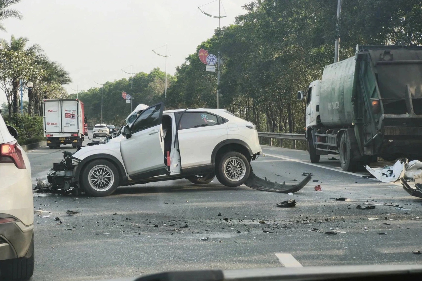 (Dân trí) - Lực lượng chức năng đang làm rõ vụ va chạm xảy ra giữa một ô tô con và một xe chở rác trên đường Võ Nguyên Giáp. Vụ việc khiến một người bị thương.