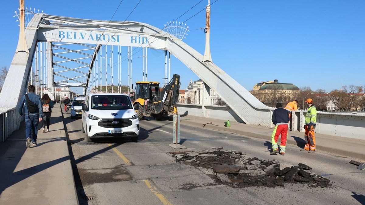 Újra kátyús a Belvárosi híd, félpályás lezárás van.