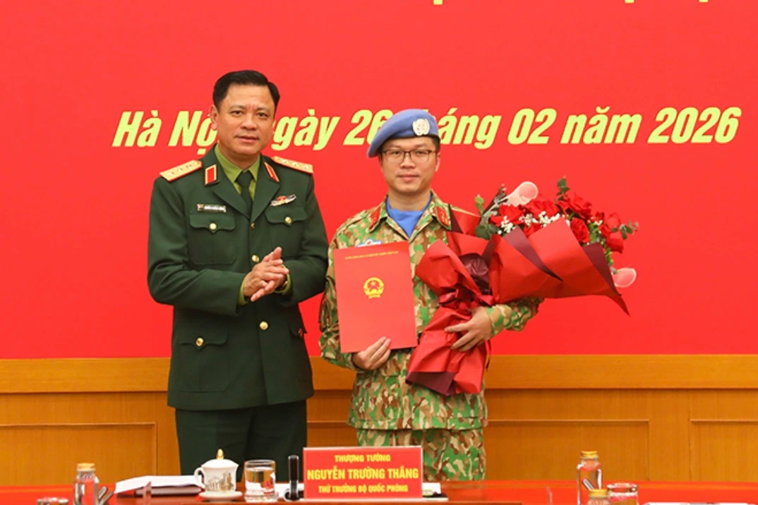 (Dân trí) - Trung tá Nguyễn Hoàng Long, giảng viên bộ môn Ngoại ngữ, khoa Trinh sát, Học viện Quốc phòng, được cử đi thực hiện nhiệm vụ gìn giữ hòa bình Liên hợp quốc tại Cộng hòa Trung Phi.