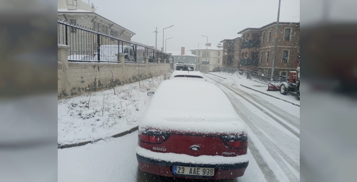Elazığ'ın Sivrice ilçesinde sabah saatlerinde başlayan sağanak yağmur, öğleye doğru kar yağışına dönüştü ve ilçeyi beyaz örtüyle kapladı.