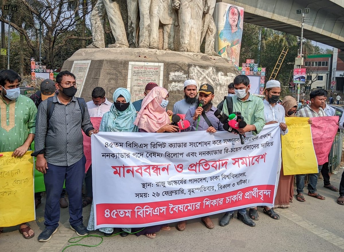 তিন দাবিতে ৪৫তম বিসিএস উত্তীর্ণ প্রার্থীদের মানববন্ধন