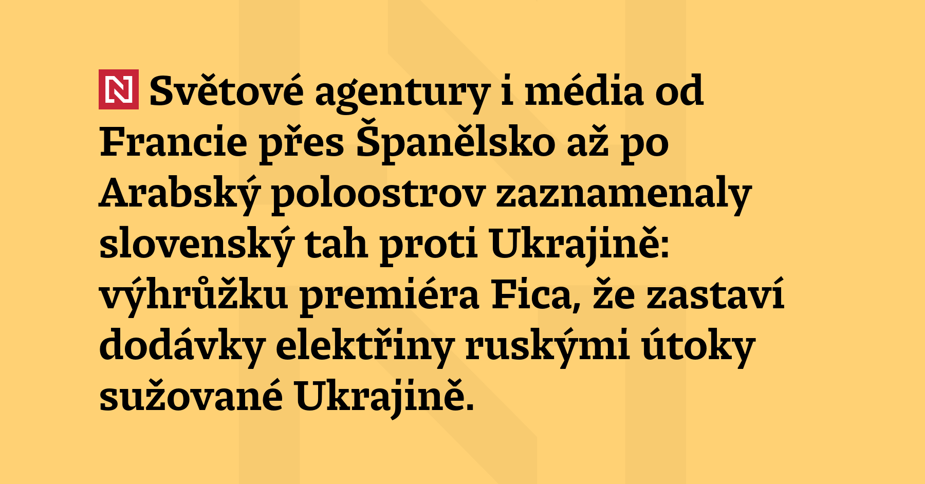 Světové agentury i média od Francie přes Španělsko až po Arabský poloostrov zaznamenaly slovenský tah proti Ukrajině: výhrůžku premiéra Fica, že zastaví dodávky elektřiny ruskými útoky sužované Ukrajině. Slovensko se tak výjimečně dostalo na titulní strany.