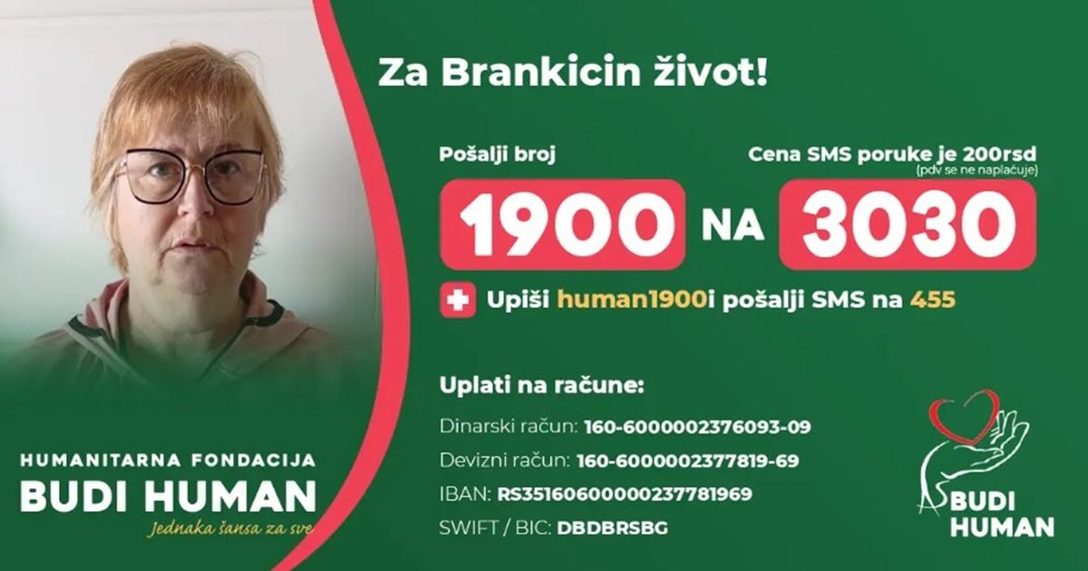 Humanitarna fondacija BUDI HUMAN – Aleksandar Šapić pokrenula je akciju prikupljanja novčanih sredstava za Brankicu Saičić (57), koja vodi tešku borbu sa.