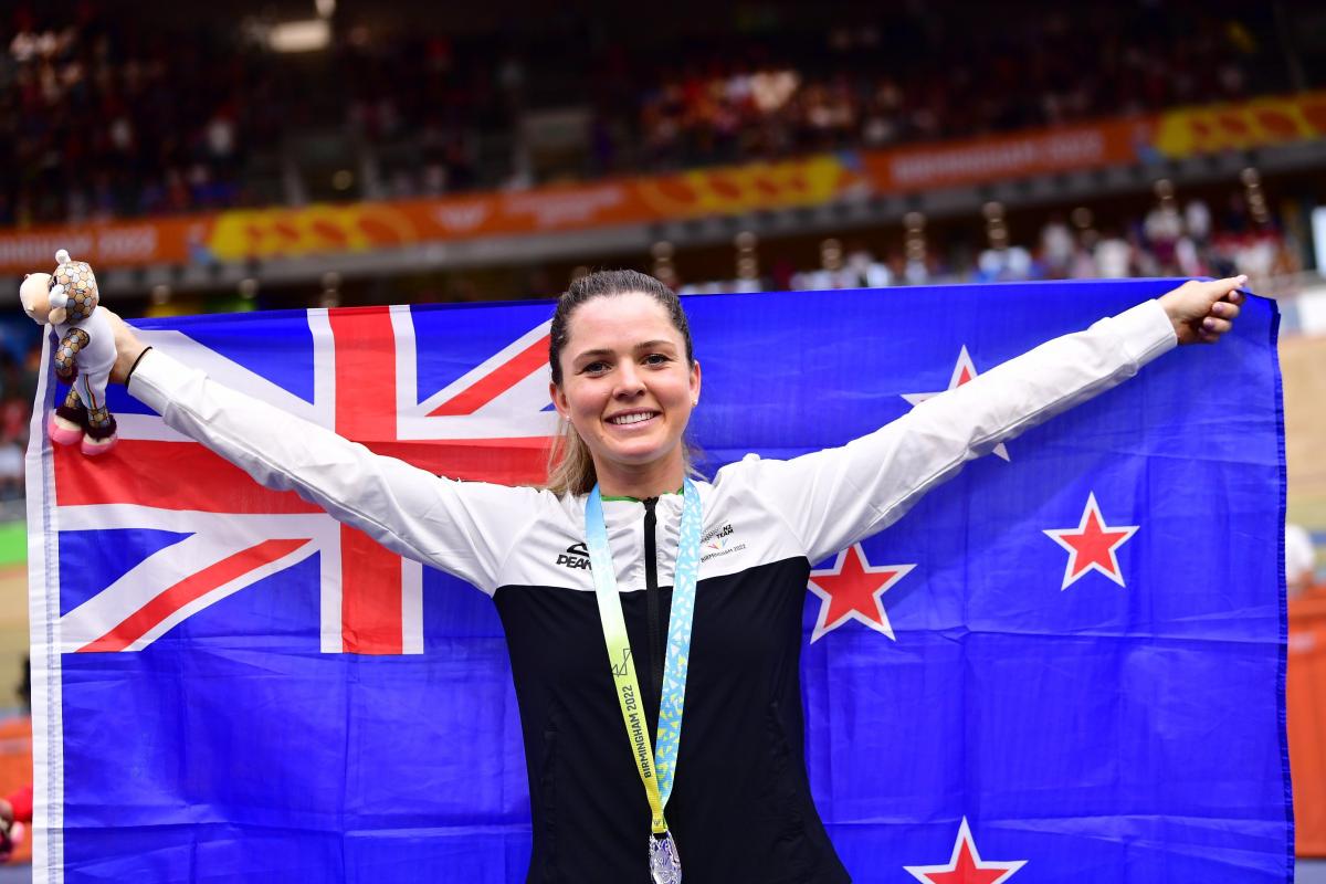 Michaela Drummond celebrates on the podium at the Birmingham Commonwealth Games in 2022. PHOTO: SWPIX Outstanding New Zealand track and road cyclist Michaela Drummond has announced her retirement from the sport.