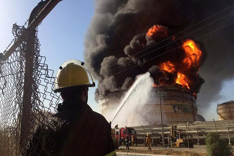 ببینید | آتشسوزی در واحد پتروشیمی شهرک صنعتی آبادان