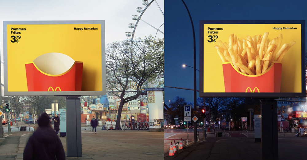 Op digitale reclameborden overdag – wanneer moslims niet mogen eten – lege verpakkingen van burgers en frietjes. Zodra de zon ondergaat, zie je wél eten en de boodschap ‘Happy Ramadan’: een oude reclamecampagne van McDonald’s gaat weer viraal. Fastfoodketen McDonald’s heeft in Duitsland in het verleden een reclamecampagne gelanceerd die inspeelde op de ramadan. De ... Verder lezen Het bericht Overdag geen eten te zien: Ramadan-campagne McDonald’s gaat weer viraal verscheen eerst op PAL .