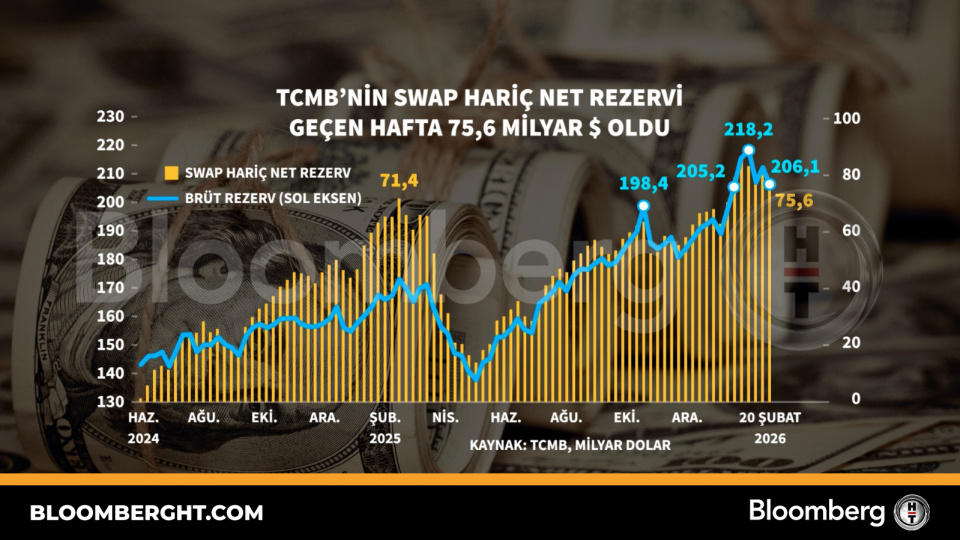 TCMB'nin swap hariç net rezervi geçen hafta 75,6 milyar dolar oldu