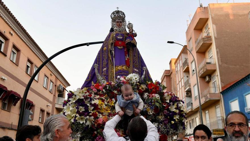 La Virgen de la Fuensanta salió este jueves de su Santuario en Algezares, arropada por sus fieles y por el manto morado del Comisario Regio de la Seda Ferderico Bernades, y emprendió sobre las tres de la tarde su camino hacia la ciudad de Murcia para inaugurar la Semana Santa.