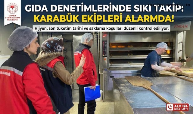 Karabük’te gıda güvenliği ve halk sağlığını korumaya yönelik denetimler aralıksız devam ediyor. Karabük İl Tarım ve Orman Müdürlüğü ekipleri, üretim, satış ve toplu tüketim işletmelerinde hijyen, son tüketim tarihi ve saklama koşullarını düzenli olarak kontrol ediyor. Kurallara uymayan işletmelere idari işlem uygulanırken, vatandaşların şikâyetlerini Alo 174 Gıda Hattı’na bildirebileceği belirtildi.