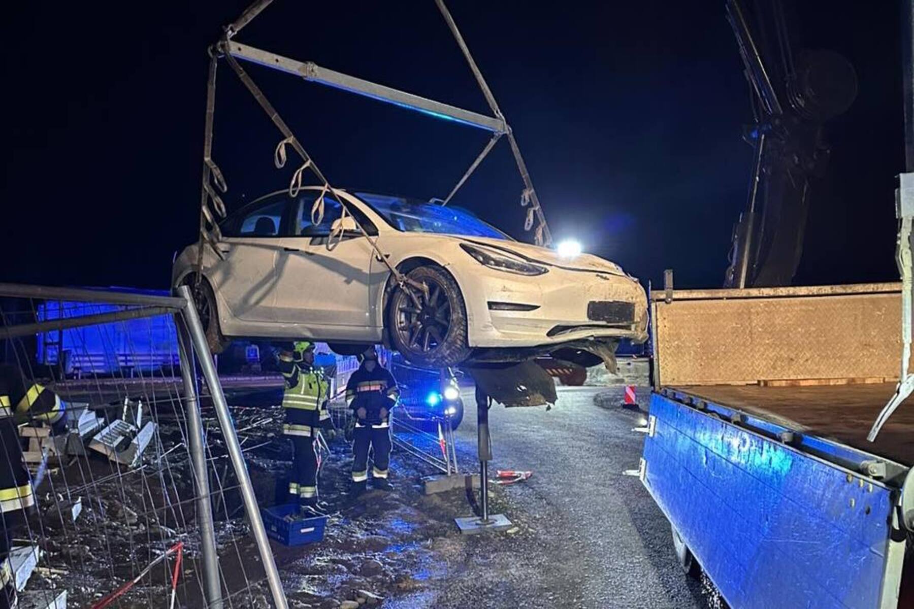 Tesla krachte in Baustelle: E-Autos bei Unfällen immer stromlos schalten