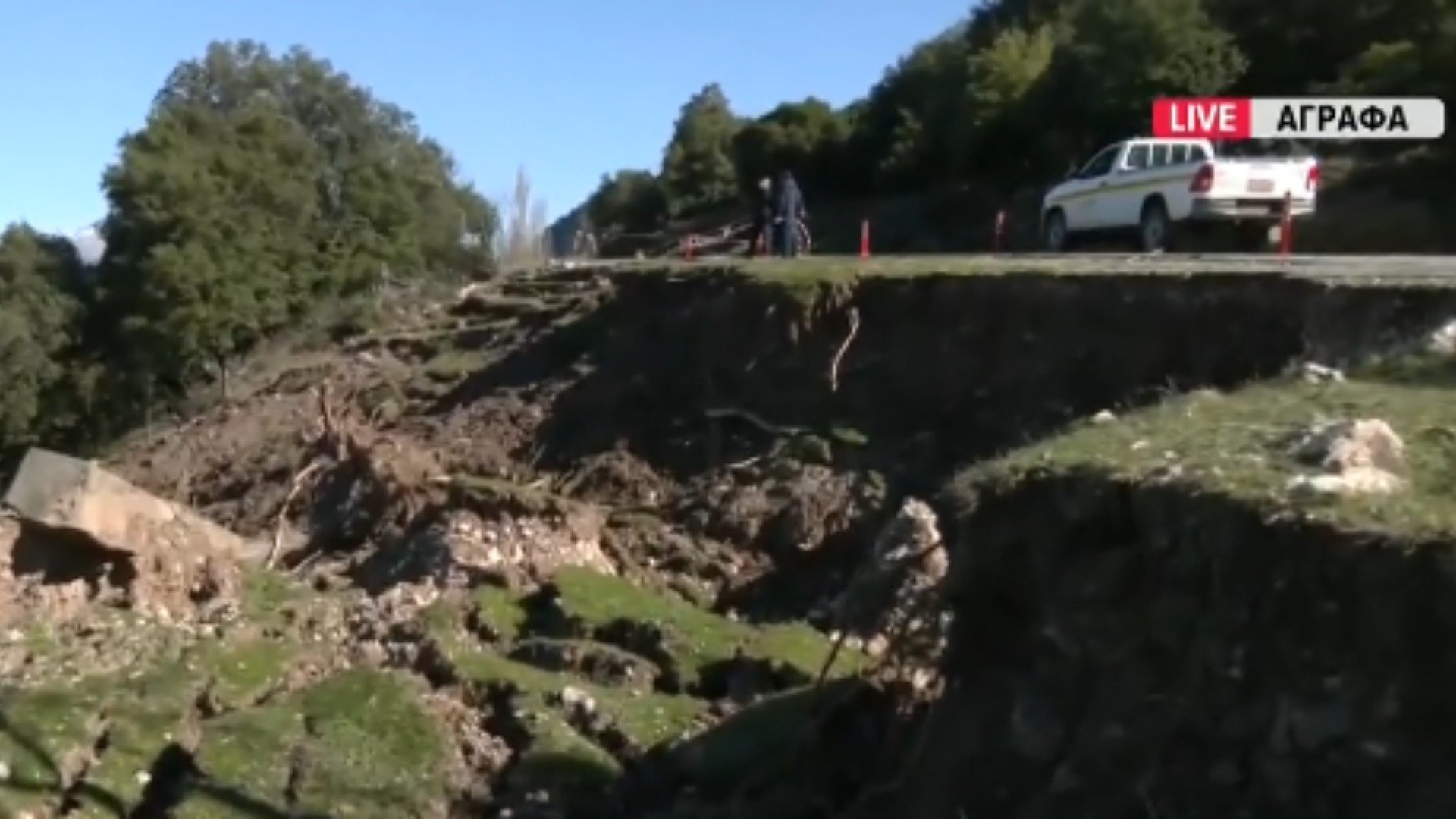 Η πλαγιά υποχώρησε από την πλευρά που βρίσκεται το ποτάμι
