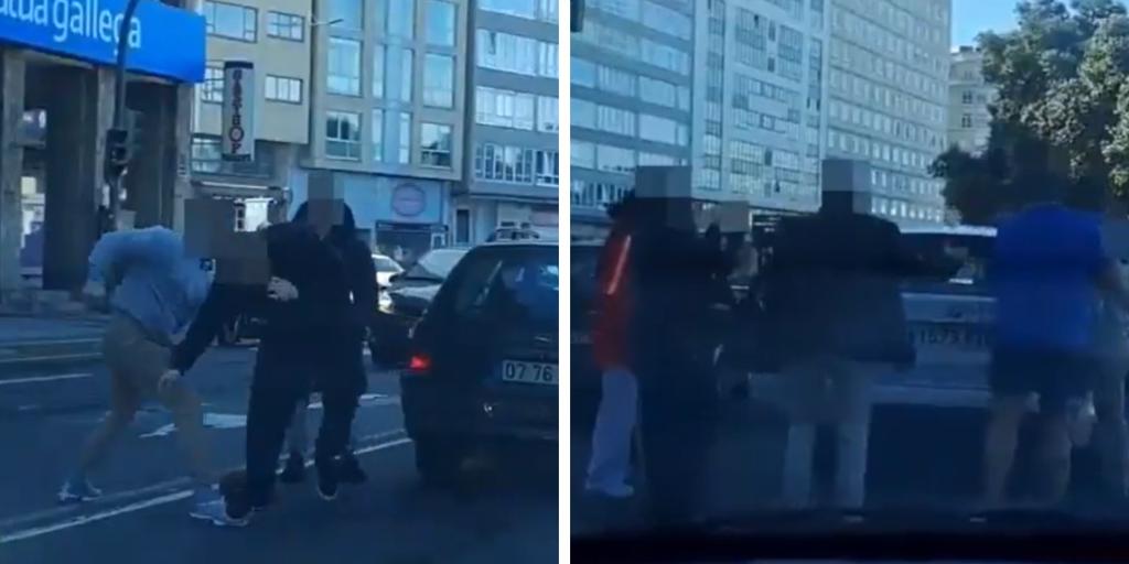 Transeúntes del paseo marítimo de La Coruña han sido testigos de una pelea a puñetazos entre dos conductores. Ambos han detenido sus coches en mitad de la calle y uno de ellos se ha aproximado al otro con ánimo belicoso, según se aprecia en un vídeo difundido en redes sociales, grabado desde un coche justo detrás. Tras un breve intercambio de golpes aparecen varias personas que logran apaciguar los ánimos y poner fin al conflicto. La pelea entre dos hombres parece iniciada por el más joven, que sale de un BMW de color blanco y se asoma a la puerta del coche del otro implicado, que conduce un Opel de color azul. El intercambio de golpes, a puño cerrado, se... Ver Más