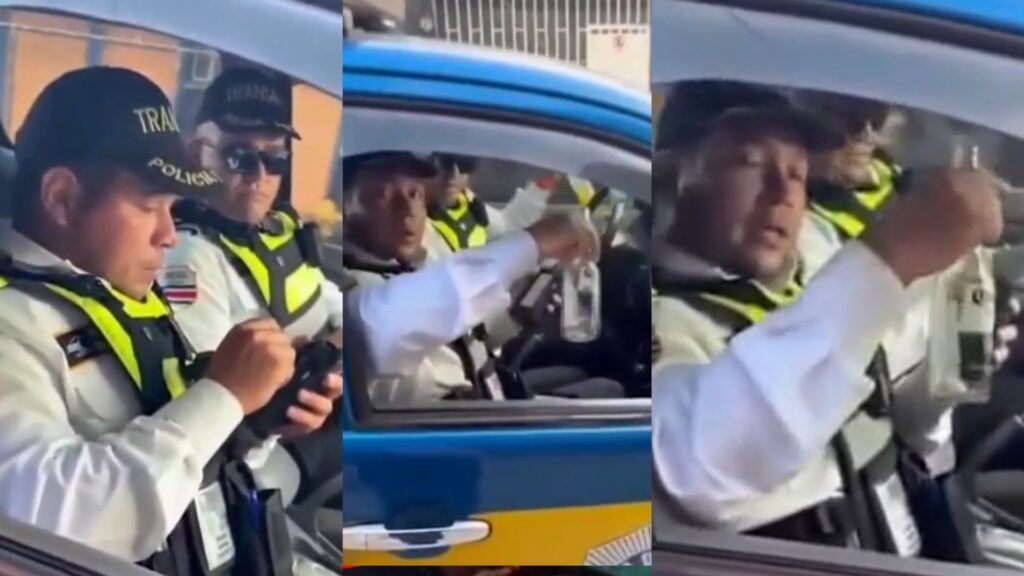 Oficiales fueron captados con dos botellas de aparente cerveza. Publicado en Repretel .