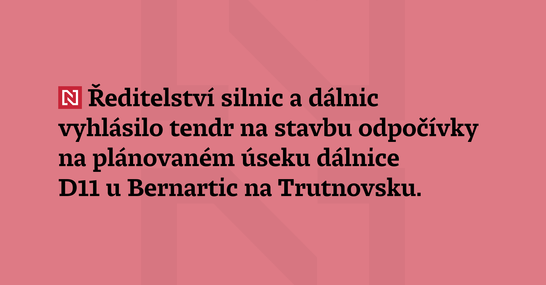 Ředitelství silnic a dálnic vyhlásilo tendr na stavbu odpočívky na plánovaném úseku dálnice D11 u Bernartic na Trutnovsku. Předpokládaná cena je 473 milionů korun bez daně, oznámil generální ředitel ŘSD Radek Mátl na síti X.