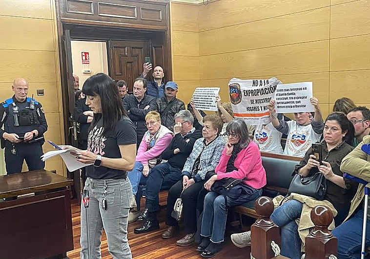 Los vecinos del barrio langreano de El Puente exigen en el Pleno poder mantener sus viviendas, rechazando que pueda haber expropiaciones