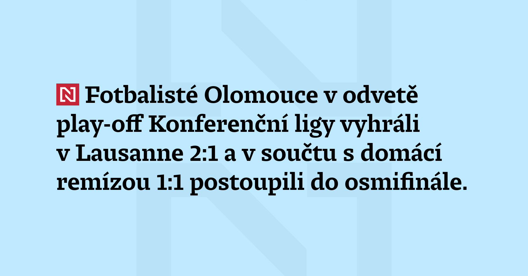 Fotbalisté Olomouce v odvetě play-off Konferenční ligy vyhráli v Lausanne 2:1 a v součtu s domácí remízou 1:1 postoupili do osmifinále. V této fázi evropské soutěže (tehdy Poháru UEFA) se představí po 33 letech. Branky olomouckého týmu vstřelili Jáchym Šíp a Antonín Růsek. Zítřejší los Olomouci přidělí za dalšího soupeře jednoho z dvojice AEK Larnaka / Mohuč. Soupeře se dozví také pražská Sparta, která do osmifinále […]