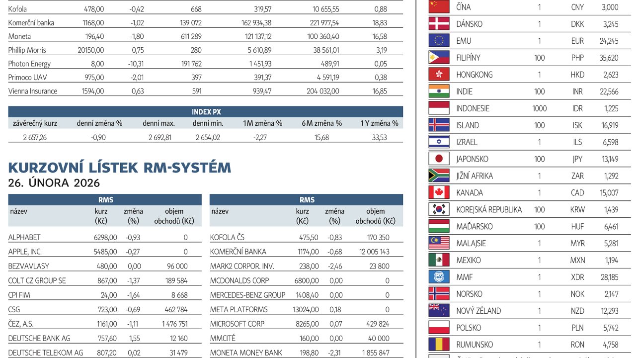 Finanční trhy (27. 2. 2026)