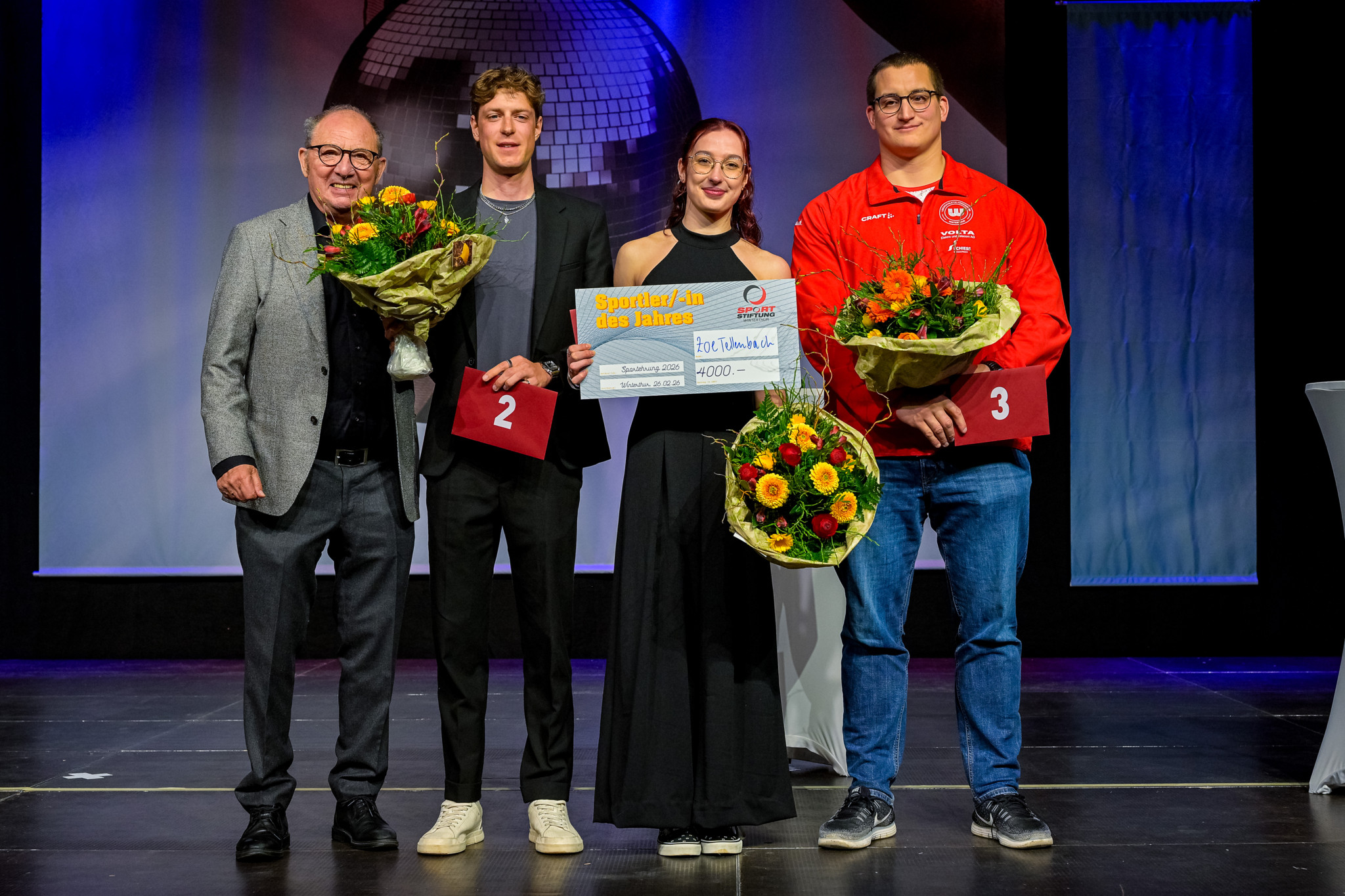 Das Publikum in der Axa-Arena wählt die Trampolinspringerin Zoe Tellenbach zur Winterthurer Sportlerin des Jahres. Einmal mehr an der Sportehrung leistet Stadtpräsident Mike Künzle ganze Arbeit.