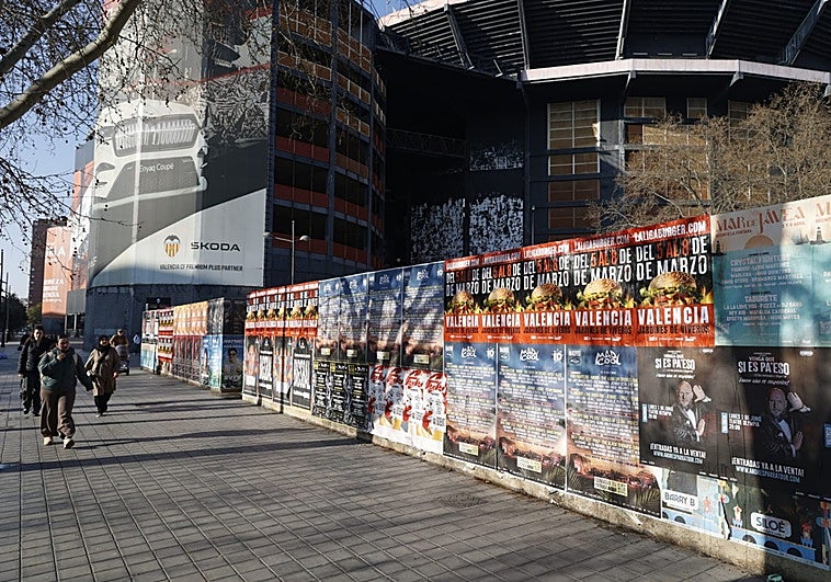 Bisbal, María Becerra, Diego Torres, el festival Mad Cool…. afiches de todo tipo de ocio ocupan un gran muro cerca de Mestalla