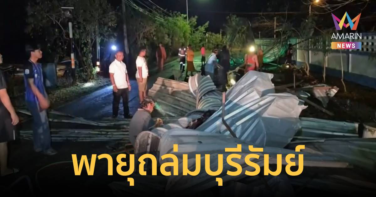 พายุฝน-ลูกเห็บถล่มบุรีรัมย์ โรงจอดรถโรงเรียนวัดพลับพลาพังยับ หอบหลังคาลอยข้ามรั้วกองกีดขวางบนถนน บ้านเรือนเสียหายกว่า 50 หลัง หนักสุดในรอบ 20 ปี