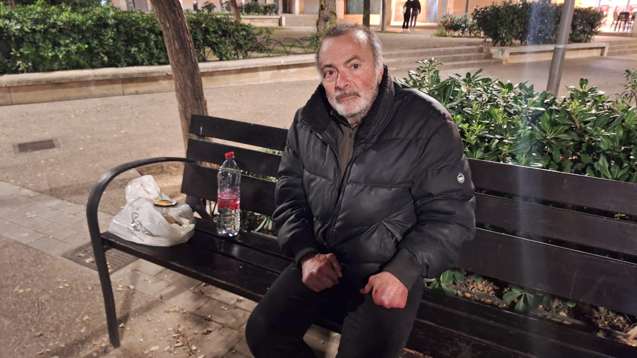 El exfutbolista del Real Mallorca, Poblense, Córdoba y Levante duerme en un banco de la zona de s'Escorxador, donde malvive sin recursos y lastrado por grandes problemas de salud y movilidad.