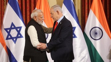 PM Israel Benjamin Netanyahu menyambut mesra kunjungan PM India Narendra Modi ke Tel Aviv pada Jumat (27/2) sampai keduanya terlihat berpelukan di bandara.