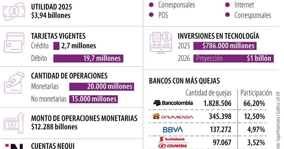 En 2025, Bancolombia concentró 66% de las quejas reportadas a la Superfinanciera, principalmente por transacciones no reconocidas