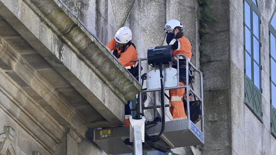 Operarios tuvieron que intervenir ayer por la mañana en la medianera entre los edificios del CEIP Froebel y la Biblioteca Pública Antonio Odriozola de Pontevedra, debido a que se estaban produciendo filtraciones de agua de este último a la torre del centro escolar. Hay que recordar que en el colegio público se finalizaron las obras de rehabilitación integral en junio del año pasado. Fueron 1,9 millones de euros en tres fases para la creación de un edificio más accesible, cómodo y adaptado al alumnado.