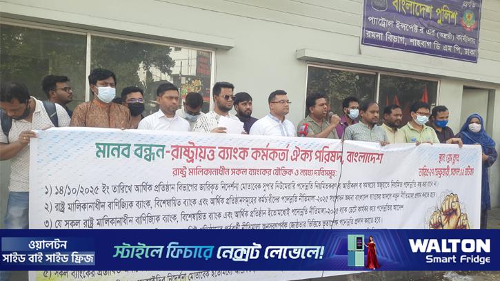 রাষ্ট্রায়ত্ত বাণিজ্যিক ও বিশেষায়িত ব্যাংকের কর্মকর্তা-কর্মচারীরা দীর্ঘদিন ধরে ন্যায্য পদোন্নতি থেকে বঞ্চিত হওয়ার অভিযোগ তুলে মানববন্ধন কর্মসূচি পালন করেছেন।