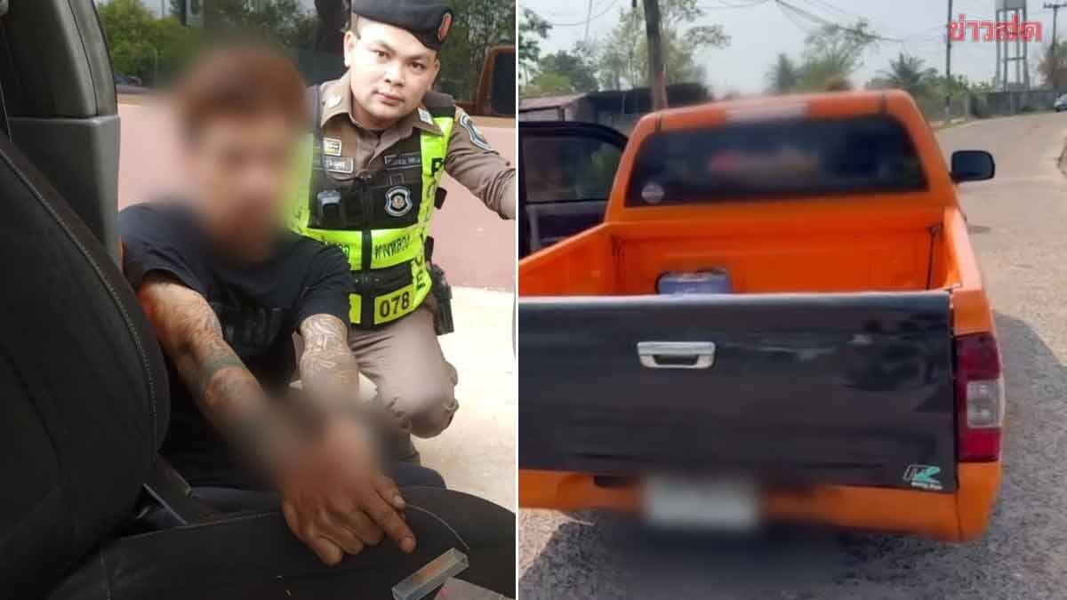 ทางหลวง สะกัดจับกระบะโหลดเตี้ย หนุ่มพกยาบ้าพิรุธแตก ทิ้งของกลางคาเบาะ วิ่งหนีสุดชีวิต 1 กม.ไปไม่รอด จะเป็นลม-ต้องส่งรพ. สุดท้ายสารภาพเพิ่งซื้อมา 38 เม็ด เสพไปแล้ว 7 วันที่ 27 ก.พ. 2569 พล.ต.ต.พรศักดิ์ เลารุจิราลัย ผบก.ทล. สั่งการให้ พ.ต.อ.วิษณุ คำโนนม่วง ผกก.6 บก.ทล., พ.ต.ท.จิระพันธุ์ มณีรัตน์ สวญ.ส.ทล.1 กก.6 บก.ทล. และ พ.ต.ท.ปานเทพ พจน์ธีระมนตรี สว.ส.ทล.1 กก.6 บก.ทล. ร่วมกันจับกุม นายณัฏฐชัย อายุ 31 ปี ในข้อหา “มียาเสพติดให้โทษประเภทที่ 1 (เมทแอมเฟตามีน) ไว้ในครอบครองโดยไม่ได้รับอนุญาต, เสพยาเสพติดให้โทษประเภทที่ 1 และขัดขืนหรือขัดขวางเจ้าพนักงานในการปฏิบัติหน้าที่” พร้อมของกลางยาบ้า 31 เม็ด, ยาไอซ์ 1.49 กรัม […]