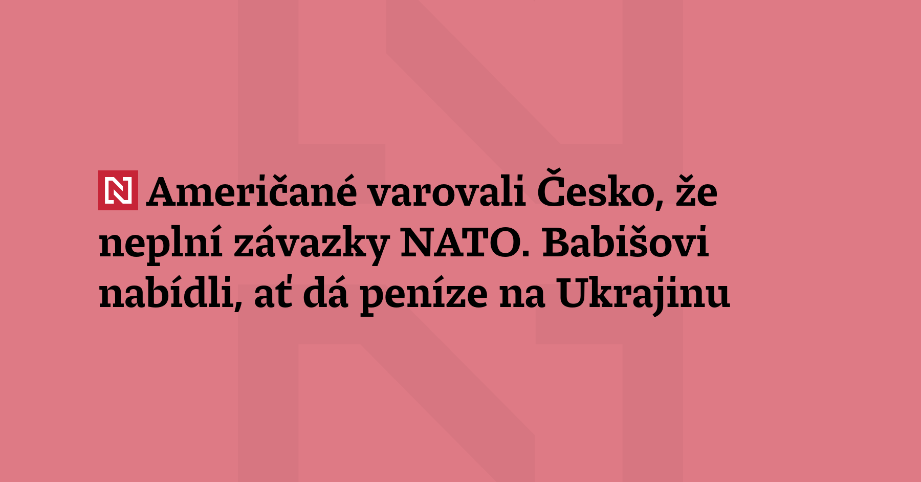 Američané tlačí na Česko kvůli neplnění závazků NATO. Velvyslanec Babišovi naznačil, aby poslal peníze na zbraně pro Ukrajinu – započítaly by se do obrany. Babiš se snaží v USA získat „odklad“.