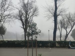Roma si sveglia avvolta dalla nebbia fitta che copre strade e palazzi visibilità ridotta: “Sembra Milano”