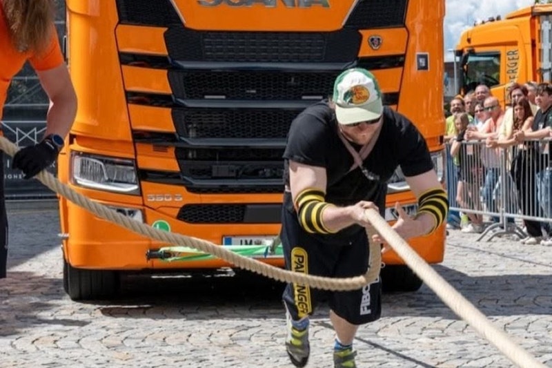 Felix Zappe will als erster Mensch der Welt eine Stunde lang einen tonnenschweren Lastwagen ziehen.