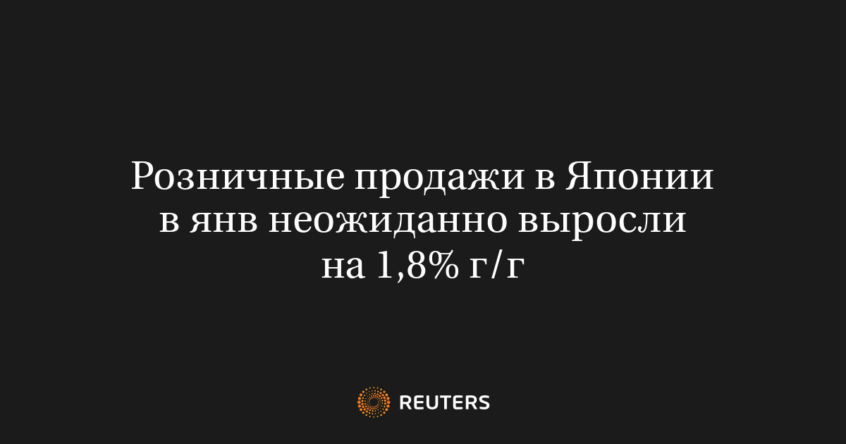 27 фев (Рейтер) - Объем розничных продаж в Японии в январе увеличился на 1,8% в годовом выражении, показали правительственные данные в пятницу.