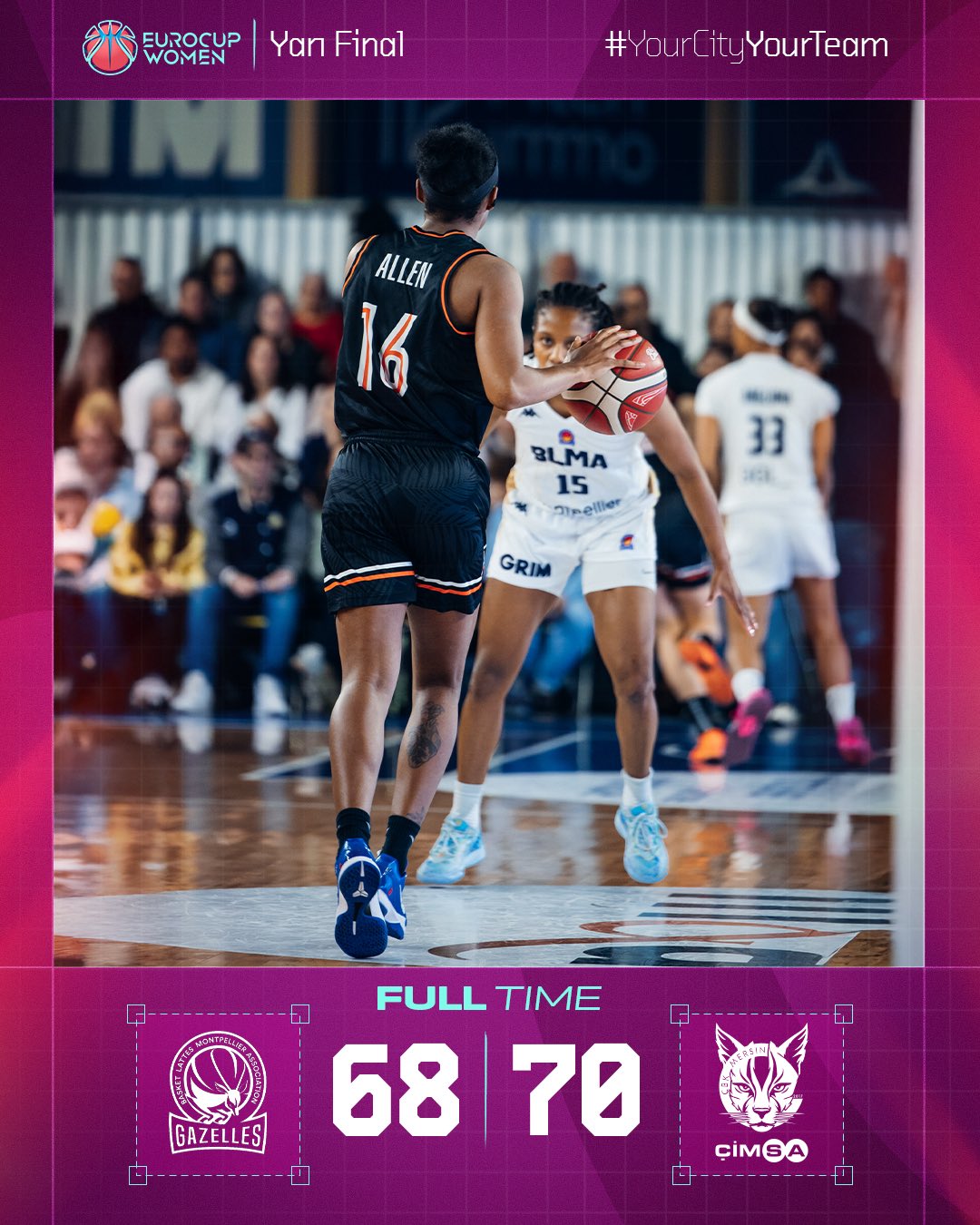 Çimsa ÇBK Mersin, FIBA Kadınlar EuroCup yarı final ilk maçında Fransa’da Montpellier Basket Lattes’i 70-68 mağlup etti. Çimsa ÇBK Mersin, EuroCup Kadınlar yarı final ilk maçında Montpellier Basket Lattes’e konuk oldu. Yakın hücumlarla geçen ilk çeyrek 21-20 Montpellier üstünlüğüyle bitti. İkinci çeyrekte ritmini arttıran temsilcimiz 40-36 devre arasına önde girdi. Üçüncü çeyrekte yakın geçen bir […]